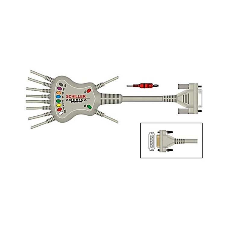 Economy Schiller 10-Lead 2 Meter Resting Patient Cable with banana plugs for use with Schiller AT-1, AT-2, AT-2 light, AT-2 Plus, AT-10, AT-10 Plus, AT-60, AT-101, AT-102, AT-102 Plus, AT-104, AT-110, CS-100, CS-200, MS-2010 and MS-2015, Resting ECG, USA