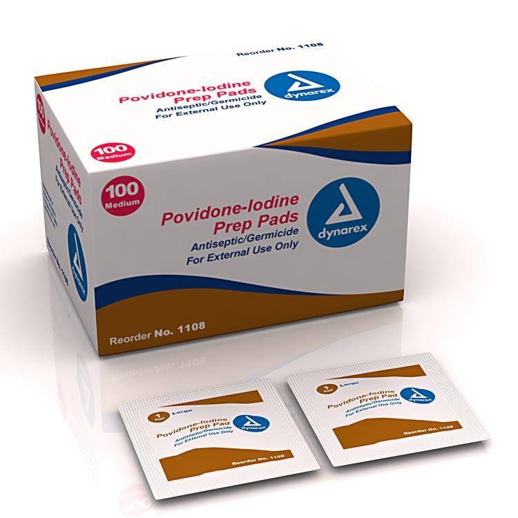 Each pad is saturated with 10% povidone iodine solution.