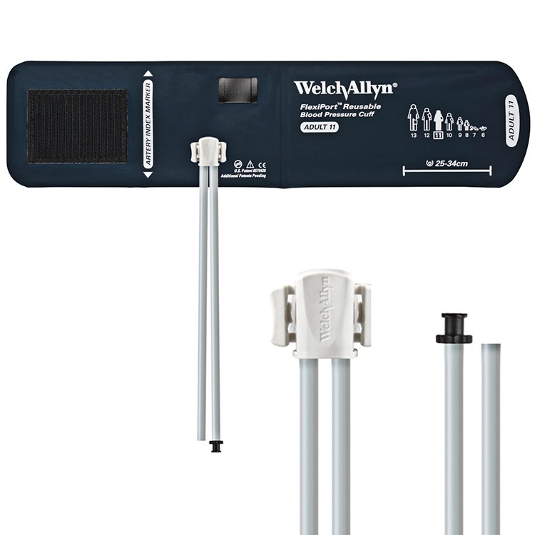 Welch Allyn FlexiPort Blood Pressure Cuff; Size-11 Adult, Reusable, 2-Tubes (8.0 and 13.0 in/20.3 and 33.0 cm), Tri-Purpose (#5082-168) Connectors