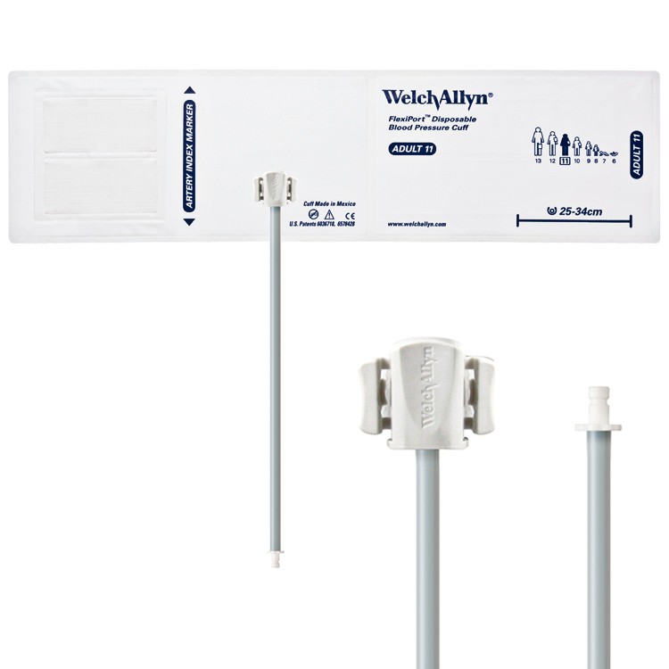 Welch Allyn FlexiPort Blood Pressure Cuff; Size-11 Adult, Soft Disposable, 1-Tube, Male Bayonet (#5082-184) Connector; Qty. 20