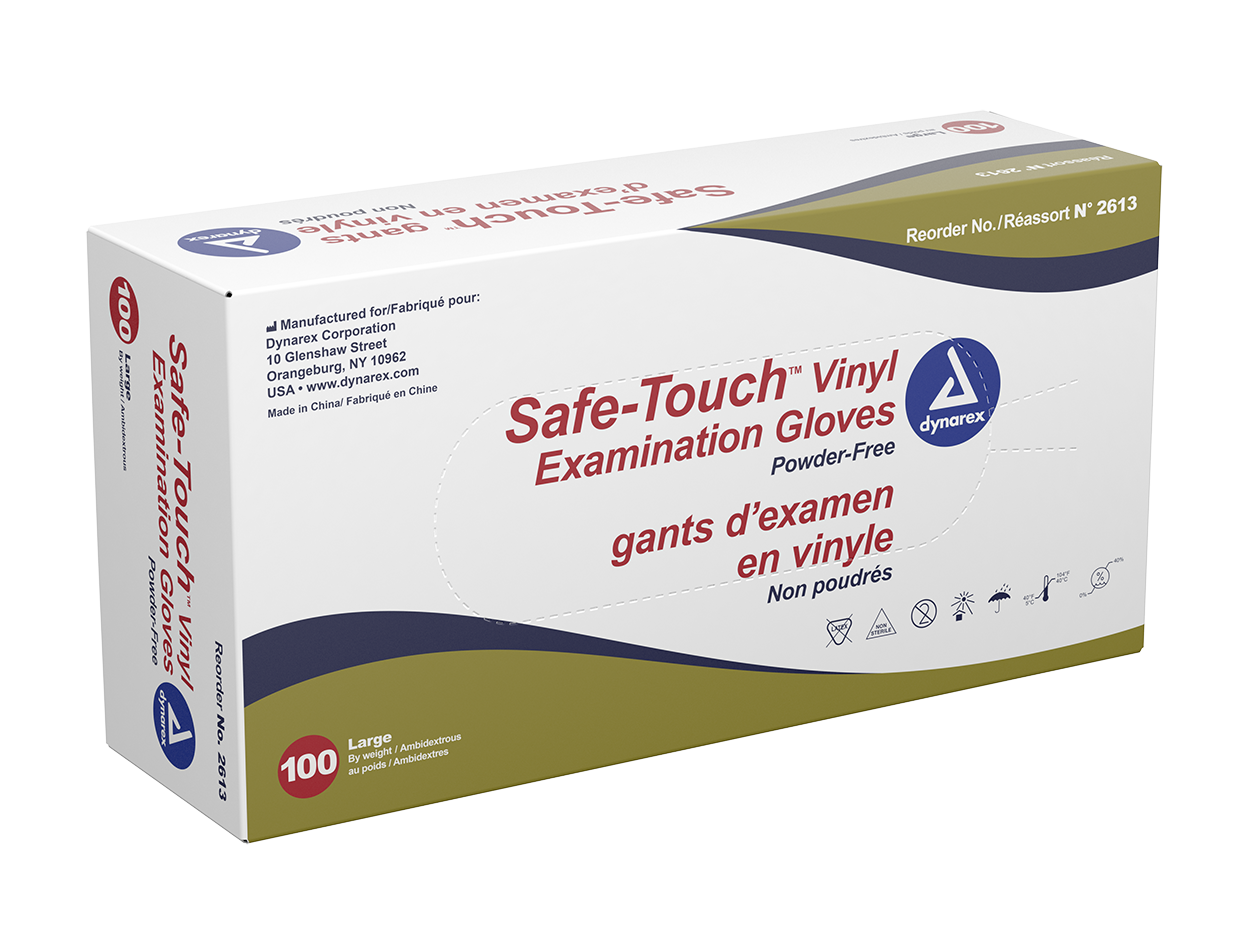 Safe-Touch Vinyl Exam Glove, PF, NS, Large, 100/box