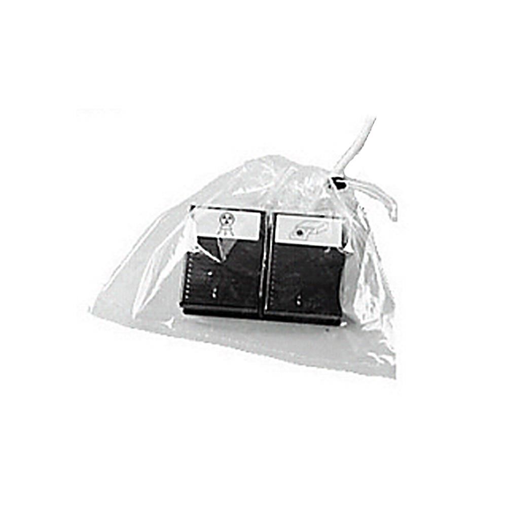 Made of clear poly, comes non-sterile, latex-free, and with an elastic cord.
