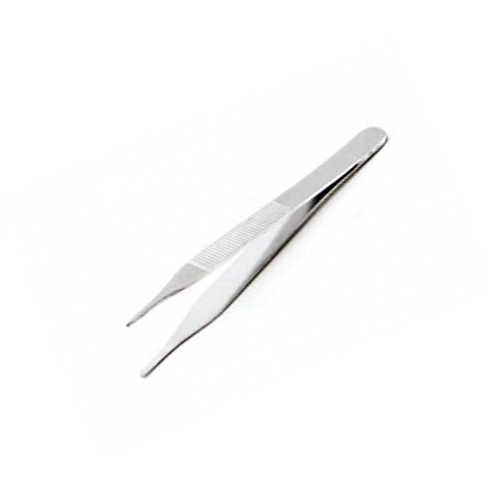 Traditional Adson forceps design with serrated tips and non slip grooved wide handle design.