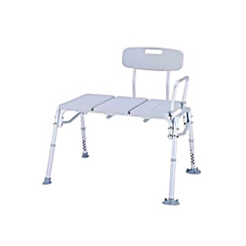 Durable blow-molded plastic seat and backrest. 1" Aluminum frame is lightweight, sturdy and corrosion resistant. Height adjusts in 1/2" increments with unique "Dual Column" extension legs. All transfer benches are reversible to accommodate any bathroom. Extra large suction cups provide added safety. 300-lb weight capacity and Seat size: 26"(W) x 16"(D).