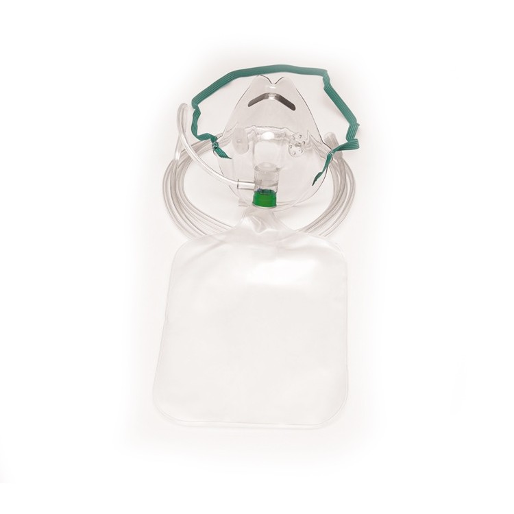 Mask, adult, oxygen, high concentration, non-rebreathing, elastic strap style, w/ 7' tube and safety vent