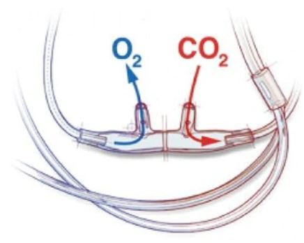 Salter Nasal Cannula Divided with one 7' O2 tube, and one 7' CO2 line. Used for simultaneous monitoring and sampling.