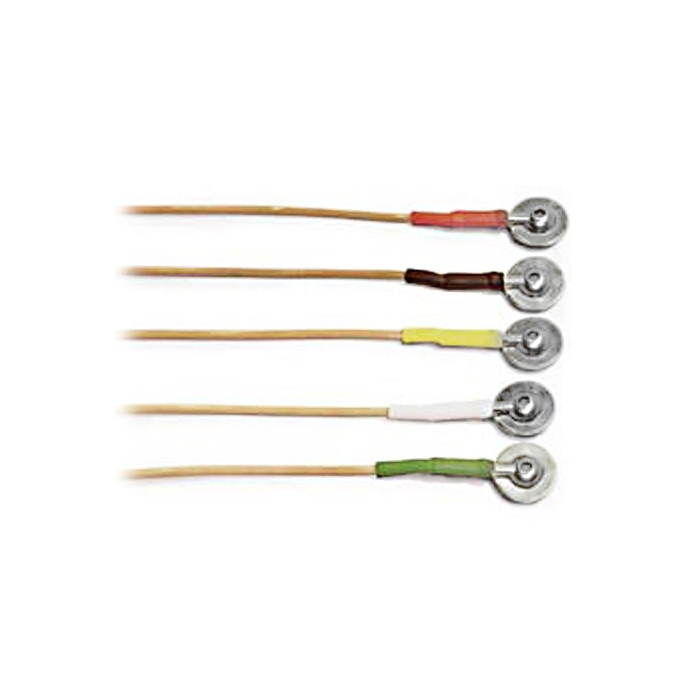 Reusable Cast Disc Electrodes Reusable Gold/Silver Silver Chloride (Ag/Cl) 10mm diameter disc electrodes with Polyurethane "tangle free" lead wire and molded 1.5mm safety connector. Each Package contains 10 electrodes.