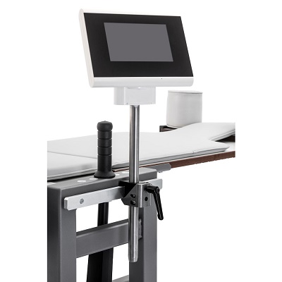 Electrical fore–aft adjustment of the ergometer allows precise positioning to accommodate a wide range of patient body sizes.