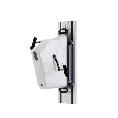The wall fastening consists of a vertical rail with hang-up mechanism which makes it possible to move the ergometer up and down electrically over a range of 70 cm.